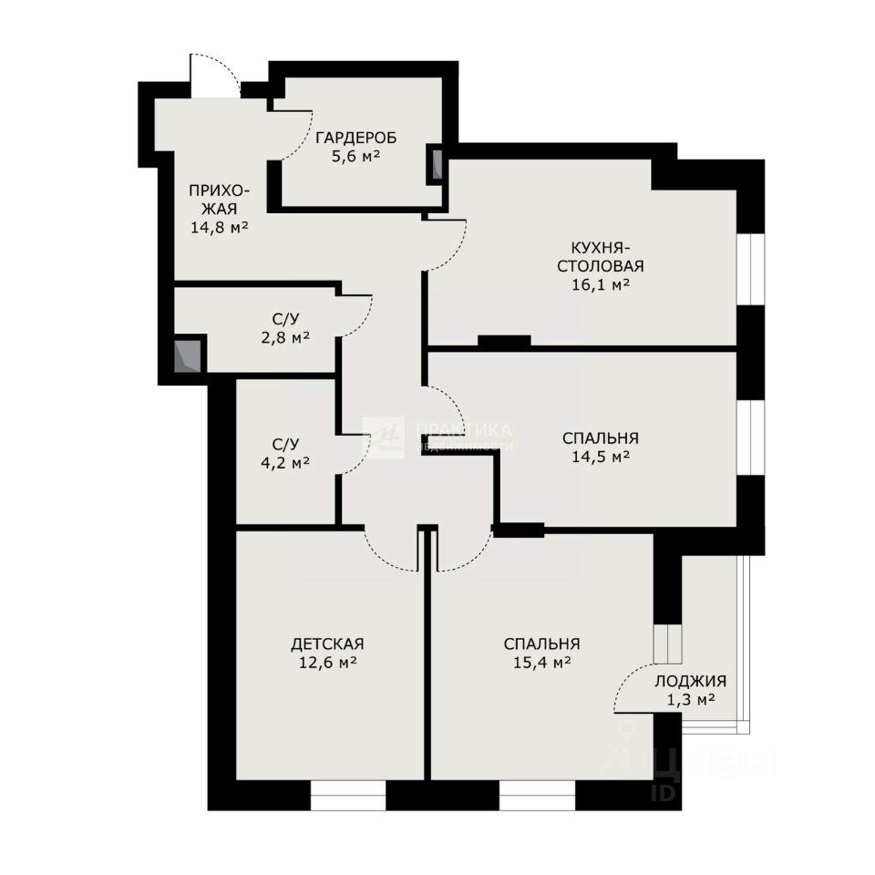 * современная и большая квартира с общей площадью 90,1 м² и высокими потолками 3.1 м