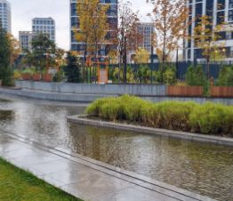ЖК Остров расположен в окружении 650 га парков и на 360 окружен водой. ЖК будет соединен с Гребным Каналом и Парком Фили вело-пешеходными мостами, которые создадут единое прогулочное пространство на всей протяженности Мневнековской Поймы.