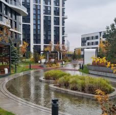 В квартире предусмотрены два просторных санузла и гардеробная, что удобно для небольшой семьи и гостей. Корпус 6 удачно развернут в сторону от автомобильной дороги. Двухкамерные аллюминивые окна в пол выходят на юг, во двор, поэтому в квартире всегда будет тихо, светло, солнечно и уютно. Из окна открываются шикарные панорамные виды на благоустроенный, утопающий в зелени, закрытый от посторонних глаз внутренний двор, главным украшением которого яляется искусственный ручей, дарующий летом прохладу, а зимой служащий центром притяжения для любителей покататься на коньках. Дом расположен на очень большом расстоянии от соседних корпусов, что позволяет избежать не совсем приятную ситуацию "окна в окна".