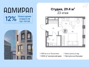 В динамично развивающемся районе Москвы, всего в 300 метрах от метро и в пешей близости от нового городского порта с протяженной набережной 13 км, свободной от автомобилей, продается студия площадью 29.40 м². без отделки.