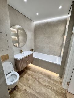 Продается новая квартира в новом доме с ремонтом "под себя", площадью 98 кв.м. плюс теплая лоджия, площадью 3.5 кв.м. Правильная планировка: есть 2 спальни, площадью 18.7 кв.м. и 17.4кв.м., гостиная, площадью 18.5 кв.м. и просторная кухня-столовая , площадью 16 кв.м. , 2 полноценных санузла. Есть гардеробная. На балконе стоят батареи (от застройщика), поэтому его можно использовать как кабинет или веранду для вечерних семейных чаепитий. В квартире при ремонте использованы современные импортные материалы :стены - покраска с декором и стеновыми панелями из натурального дерева (дуб). В основном санузле установлена ванная с тропическим душем, система теплй пол, раковина, есть место под стиральную и сушильную машинки. Во втором санузле душевая кабина, раковина. Полы: ламинат елочка и керамогранит. Вся квартира выполнена в теплых пастельных тонах. Установлены все потолочные и настенные светильники, кондиционеры. Дренажная система кондиционеров выведена в канализационную трубу, высокие межкомнатные двери имеют высоту -230 см, деревянные подоконники, теневые потолки, видеодомофон. Красивые виды из окон. Концепция дома -двор без машин. В доме есть подземный паркинг. Вокруг комплекса много свободных парковочных мест. До метро шаговая доступность.У дома закрытая территория с детской площадкой.