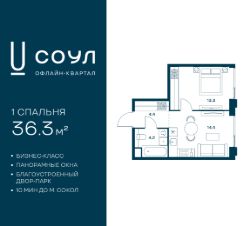 Продается 1-к. квартира номер 764 общей площадью 36.3 кв.м. на 16-м этаже 24 этажного дома, Корпус 9. С предчистовой отделкой.