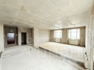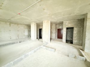 Площадь квартиры без учета площади лоджии 128,4м2. Без отделки. Без межкомнатных стен. По плану в квартире предусматривалось 3 изолированных комнаты, гостиная, кухня, 2 санузла, 2 помещения свободного назначения, лоджия. Входная дверь в квартиру: металлическая, усиленная. Окна и балконные двери: ПВХ профили с двухкамерными стеклопакетами с повышенными теплозащитными и шумозащитными характеристиками. Остекление лоджии: витражи из алюминиевых профилей с однокамерными стеклопакетами. Расчетная мощность электрической сети: 16 кВт. Приборы отопления: стальные панельные радиаторы с терморегуляторами. Потолки 3 м.