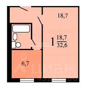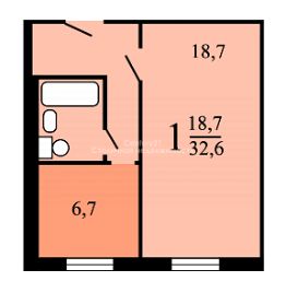 Площадь: 32,6 м² (жилая 18,7 м², кухня 6,7 м²)