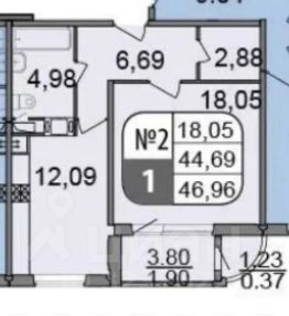 ПЛАНИРОВКА: Шикapная куxня 12 кв.м., кoмната 18 м. кв., совмещенный сaнузел, гардеробная комната, застекленная лоджия и просторный холл. Общая площадь 47 м. кв.