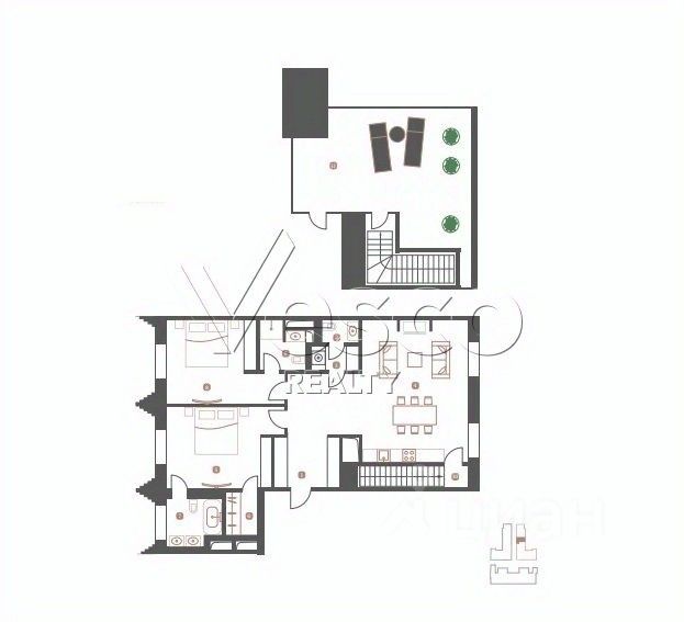 Расположенный на 6-м этаже элитного особняка "Свет" в составе комплекса клубного типа "Большая Дмитровка, 9", пентхаус предлагает продуманное пространство площадью 109 кв. м, дополненное шикарной видовой террасой в 38 кв. м - настоящим украшением резиденции.