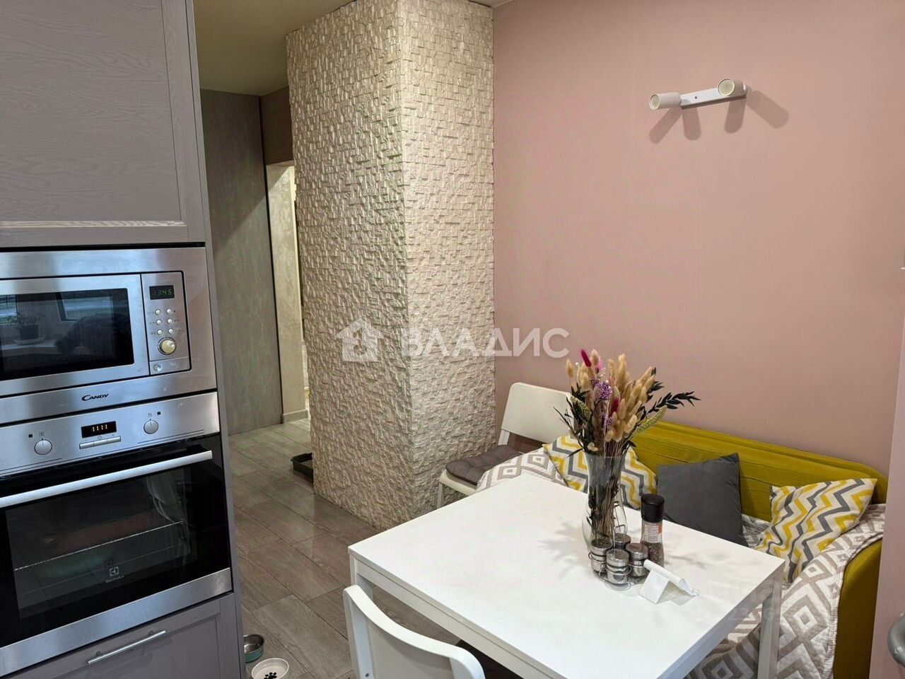 Квартира расположена на втором этаже 25-этажного монолитного дома, построенного в 2019 году. Общая площадь составляет 38,5 кв. м, из которых 20 кв. м — жилая площадь, 8,5 кв. м — кухня. В квартире выполнен евроремонт, есть балкон, окна выходят во двор.