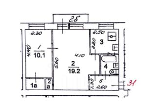 Светлая, теплая, уютная двухкомнатная квартира — солнце с утра до обеда. Окна выходят в тихий, зеленый двор. Балкон. Общая площадь 43,7 м², большая комната 19,2 м², малая комната 12,6 м², кухня 5,5 м², санузел совмещенный 2,9 м², коридор 3,5 м².