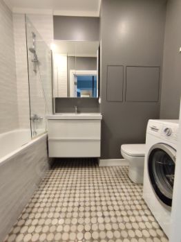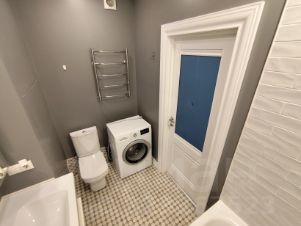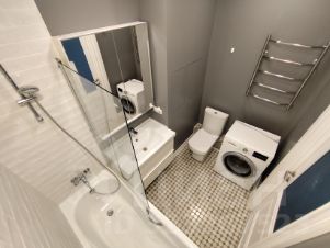 В квартире сделан качественный ремонт: паркетный пол, в коридоре и ванной установлены теплые полы, удобная функциональная кухня "Мария" с посудомоечной машиной, духовкой и плитой bosh, в коридоре и на лоджии вместительные шкафы.