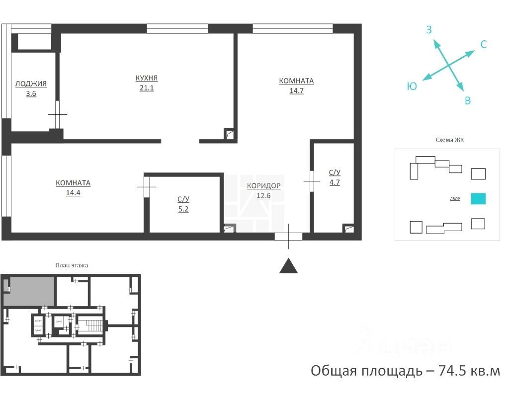 Удобная планировка предусматривает: две изолированные комнаты, просторная кухня, 2 санузла, каждая комната наполнена светом, в квартире 3 больших окна и лоджия.