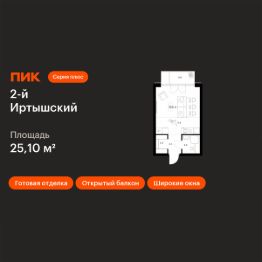 Продаётся квартира-студия площадью 25,1 кв.м на 4 этаже 19 этажного дома (Корпус 1.2, Секция 2) проекта ПИК 2-й Иртышский. Светлый просторный подъезд на уровне земли, функциональная планировка, большие окна, c отделкой.