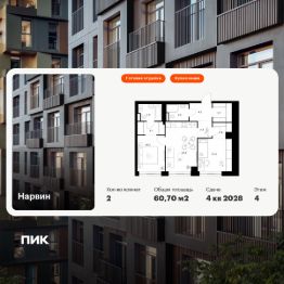 Новостройка! Продается 2-комн. кв-ра площадью 60,7 кв.м, (Корпус 1.3, Секция 3) 4 этаж 38-этажного дома в Нарвин от ПИК. Новый проект ПИК Серии плюс "Нарвин" возводится в Головинском районе Москвы.