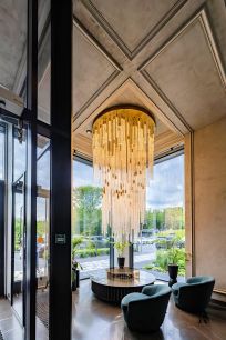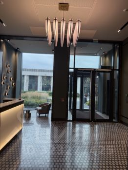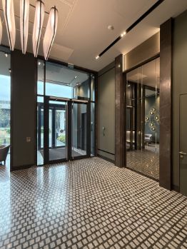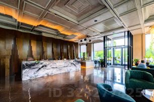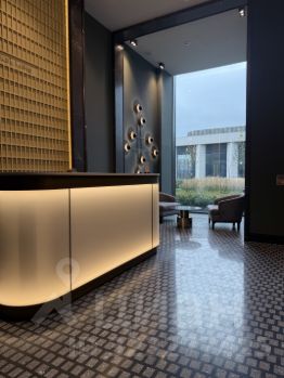 Закрытая охраняемая территория, лобби и ресепшеном (с камином, баром).
