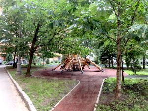 Высокий этаж (выше - только технический этаж), поэтому квартира светлая, чистый воздух, красивые виды, в квартире достаточно тихо. Большой зеленый двор с детской площадкой.
