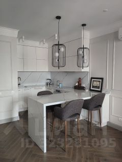 - Кухня лаконично встроена в зону гостиной , оборудована техникой Bosch (плита и посудомоечная машина)