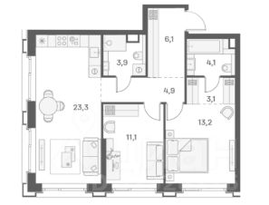 Продаётся трёхкомнатная квартира евро формата с большой гостиной совмещенной с кухней-нишей, мастер-спальней, двумя санузлами, и черновой отделкой: