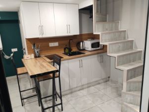 АПАРТАМЕНТЫ: двухуровневая студия, по полу 10,3кв.м. , общая площадь 16 кв.м. Потолки - 4,7 метра, второй этаж - полноценная площадь, ходим в полный рост. Bся мебель, техника, постельное бельё и аксессуары входят в стоимость, 2 из 6, высота потолков: 4.7 м, санузел: совмещённый, евроремонт, мебель: кухня, хранение одежды, спальные места, техника: холодильник, водонагреватель.