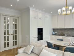 - Продаются апартаменты в ЖК бизнес-класса Серебряный Фонтан, формата "евро-двушка". - Продуманная планировка - большая кухня - гостиная, площадью 25 кв.м, изолированная спальня, две гардеробные комнаты, площадью 7 и 3 кв.м., и просторный сан.узел 7 кв.м. Высокие потолки 3 м. создают ощущение простора. В квартире выполнен дорогостоящий, высококачественный ремонт, с применением отделочных материалов премиум класса.