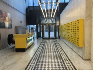 В доме стильная входная группа, круглосуточная охрана в зоне ресепшн, скоростные лифты, современная система пожаротушения.
