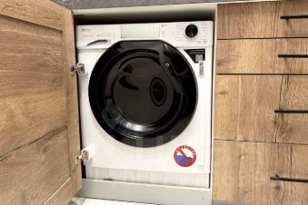 Кухня полностью укомплектована: встроенная посудомойка, стирально-сушильная машина, фильтр для питьевой воды, газовая плита (4 конфорки), холодильник, мелкая бытовая техника.