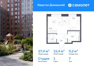 Строим кварталы для жизни с заботой о будущем. Предлагается квартира студия комфорт-класса 27,44 кв.м в корпусе 1 на 7 этаже, в ЖК "Квартал Домашний"