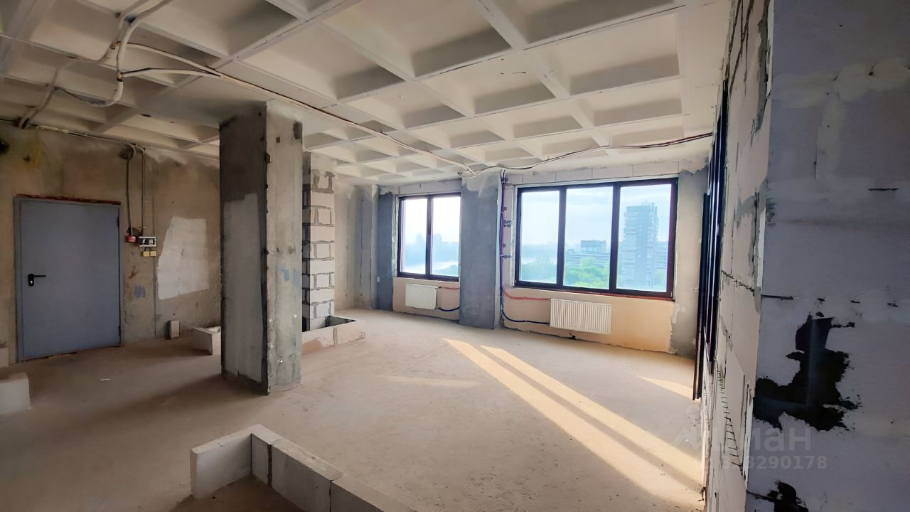 Квартира свободной планировки, что позволяет воплотить любые творческие решения. Можно сделать полноценную двух или трёхкомнатную квартиру. 4 больших окна, из которых открывается потрясающий вид на Химкинское водохранилище и панораму Москвы. В доме 3 лифта с доступом в подземный паркинг. Чистый подъезд, хорошие соседи.