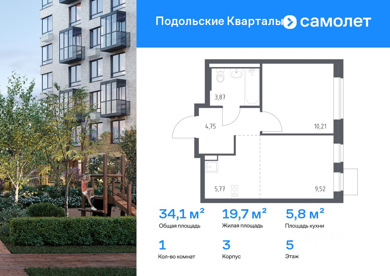 Строим кварталы для жизни с заботой о будущем. Предлагается 1-комнатная квартира комфорт-класса 34,12 кв.м в корпусе 3 на 5 этаже, в ЖК "Подольские Кварталы"