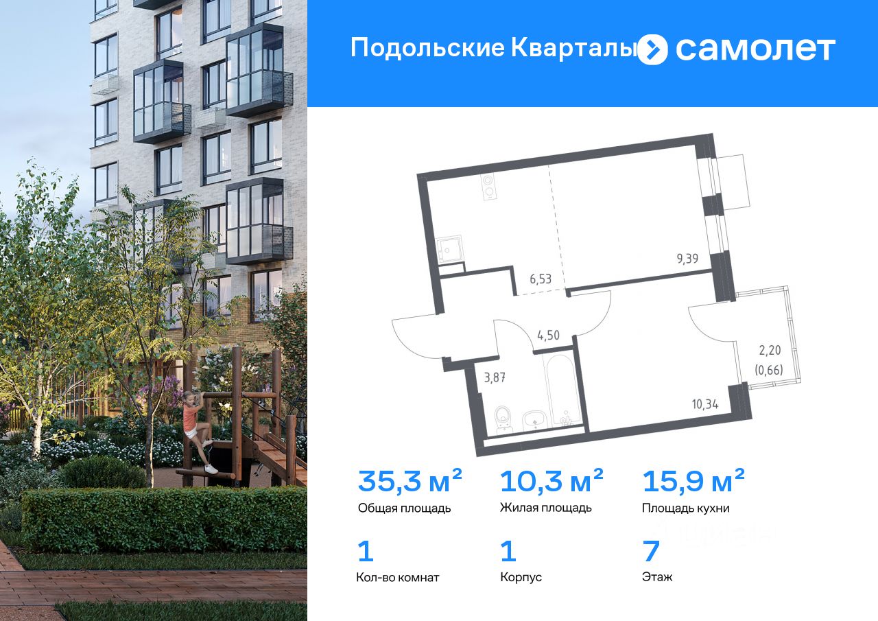 Строим кварталы для жизни с заботой о будущем. Предлагается 1-комнатная квартира комфорт-класса 35,29 кв.м в корпусе 1 на 7 этаже, в ЖК "Подольские Кварталы"