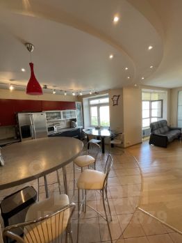 Кухня (16м) полностью экипирована всем необходимым: Мебель Дарина по индивидуальному заказу; Холодильники NorCool(Норвегия) и Maytag (США); кухонная техника Miele (Германия) измельчитель пищевых отходов в раковине insink erator Bone Crasher(США); барная стройка и все горизонтальные поверхности сделаны из искуственного камня. Пол - керамогранит с электроподогревом.