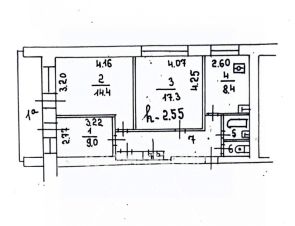 Изолированные комнаты (17,3-14,4-9 кв м), раздельный санузел, кухня 8,4 кв м.