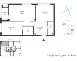 Площадь квартиры 74,5м² , 3 панорамных окна и ВЫСОТА ПОТОЛКОВ 3,48 метра!!! создают ощущение простора и наполняют пространство естественным светом.