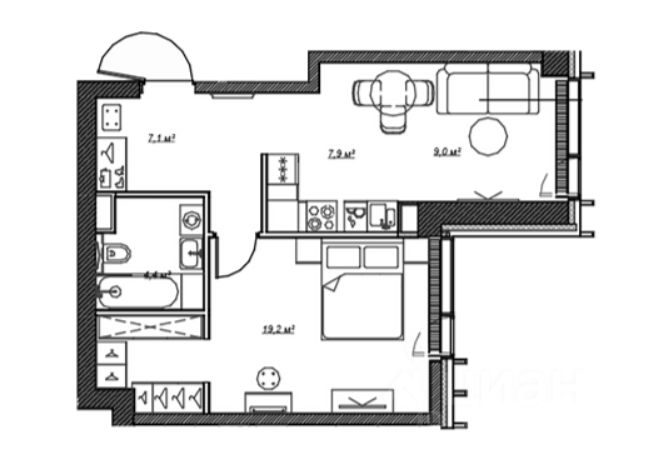 Продаётся двухкомнатная квартира евро формата с большой гостиной совмещенной с кухней-нишей, совмещенным санузлом, и отделкой Whitebox :