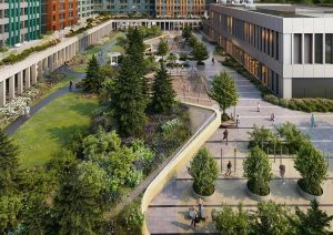 INJOY задуман как автономная городская среда, в которой есть всё необходимое для комфортной жизни. На территории школа, детский сад и спортивный центр с бассейном.