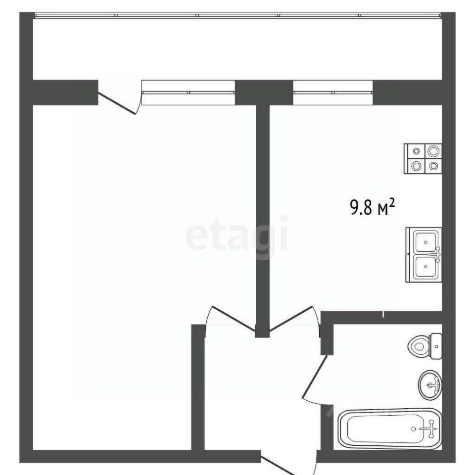 Планировка квартиры функциональна и включает изолированную комнату с выходом на широкий застекленный балкон, отдельную кухню, совмещенный санузел с ванной и прихожую. Объект передается полностью меблированным, санузел недавно обновлен.
