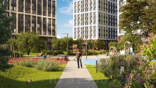 • Дворы без машин и продуманная инфраструктура на первых этажах. Внутренние дворы благоустроены: детские и спортивные площадки, пешеходные аллеи и коммерческие помещения с сервисами — кафе, магазины и повседневные услуги прямо у жилья