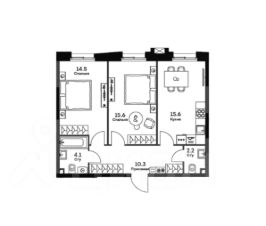 2 спальные комнаты: 15.6 - 14.5 м²