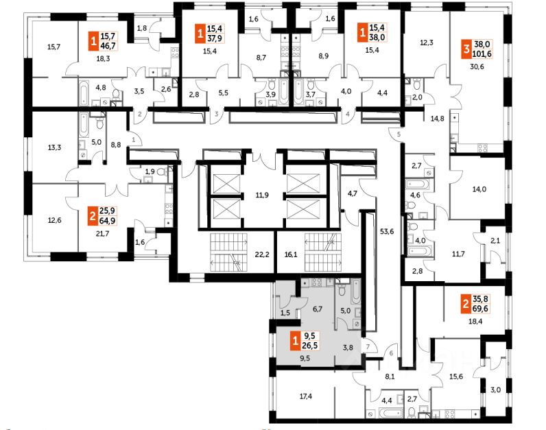 Общая площадь - 26,5 кв.м.