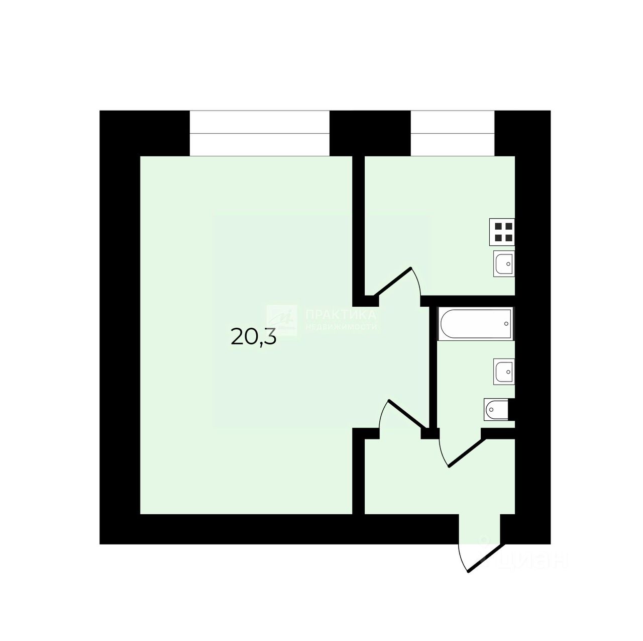 Общая площадь квартиры составляет 31,9 кв. м, из которых 20,3 кв. м занимает уютная изолированная комната. Комнату возможно удачно зонировать, выделив место для сна, зону отдыха, а также зону хранения. Кухня площадью 6 кв. м , полностью укомплектована необходимой мебелью и бытовой техникой. Мебель остается новому владельцу. Высота потолков составляет 2,64 м. Удобный совмещенный санузел. Домофон. Качественные пластиковые окна. Вид из окон во внутренний двор.