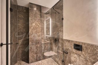 Стиль — неодеко. Контраст тактильных поверхностей и редких видов мрамора со стильным металлом в акцентах. Интерьер создан как идеальный фон для ярких элементов декора и персонального стиля будущих владельцев.