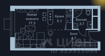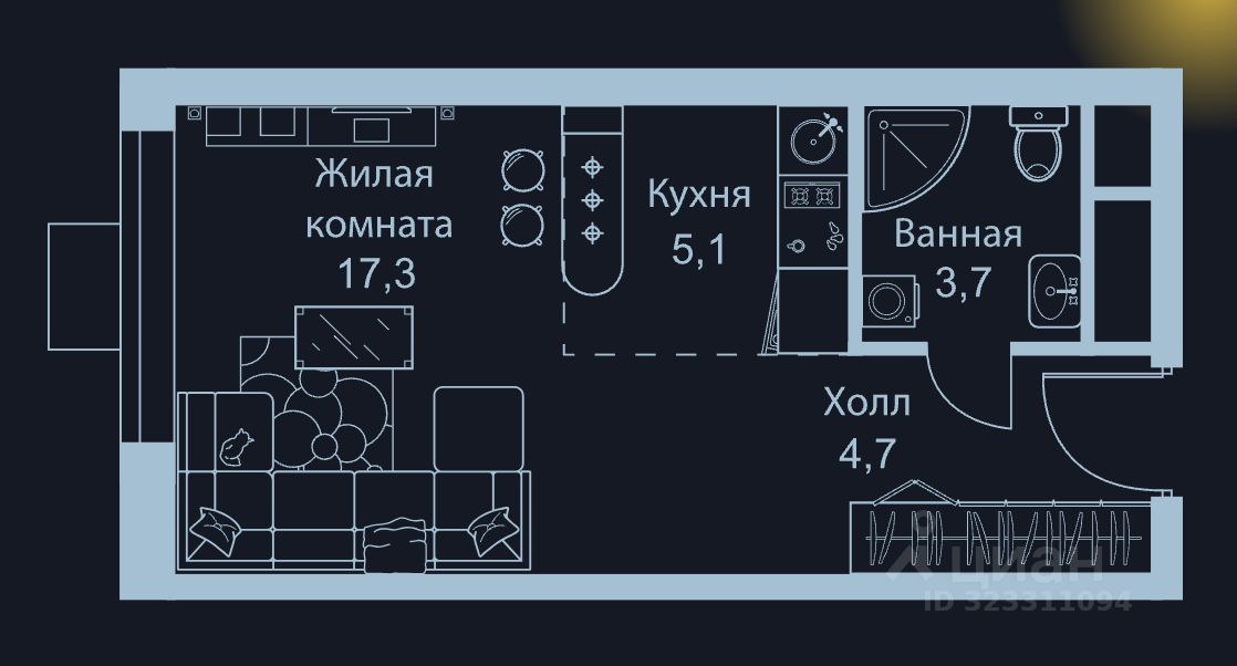 - Идеальная планировка: Продуманная планировка позволяет грамотно зонировать пространство, выделив уютную кухню-нишу, просторный коридор 6 м² и комфортный санузел 3,7 м².