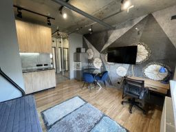 Общая площадь студии составляет 25,6 квадратных метров. Евроремонт придаёт квартире современный вид и обеспечивает комфорт проживания. Фильтрация воды системой Аквафор. Датчики температуры и влажности. Бойлер на 100 литров Ariston. Окна выходят на улицу, что обеспечивает хорошую освещённость помещения.