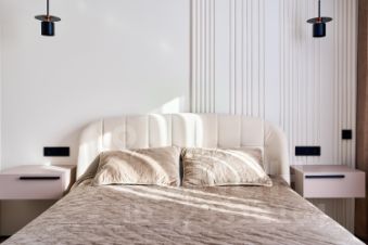 - Спальня с гардеробной и продуманными местами для хранения.