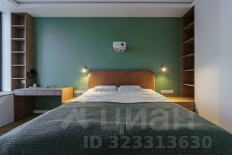 Спальня 16 м² оборудована рабочей зоной, современным проектором JVC, системой хранения. Вторая спальня (детская) с двухуровневой кроватью, рабочей зоной и вместительной системой хранения; предлагается фото с альтернативной меблировкой (диван).