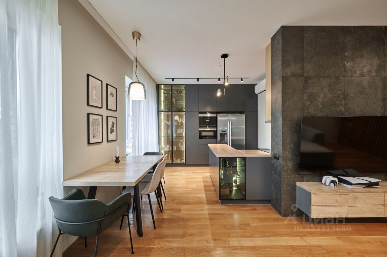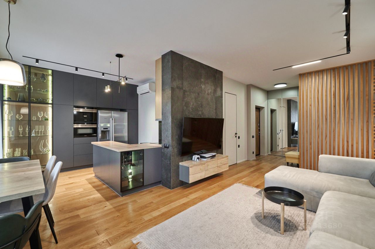 В квартире выполнен дорогостоящий, дизайнерский ремонт по индивидуальному дизайн проекту с применением дорогих, отделочных материалов, эксклюзивного освещения и дорогостоящей мебелью на заказ из Италии. На полу дубовая инженерная доска. Тёплые полы в с\у.