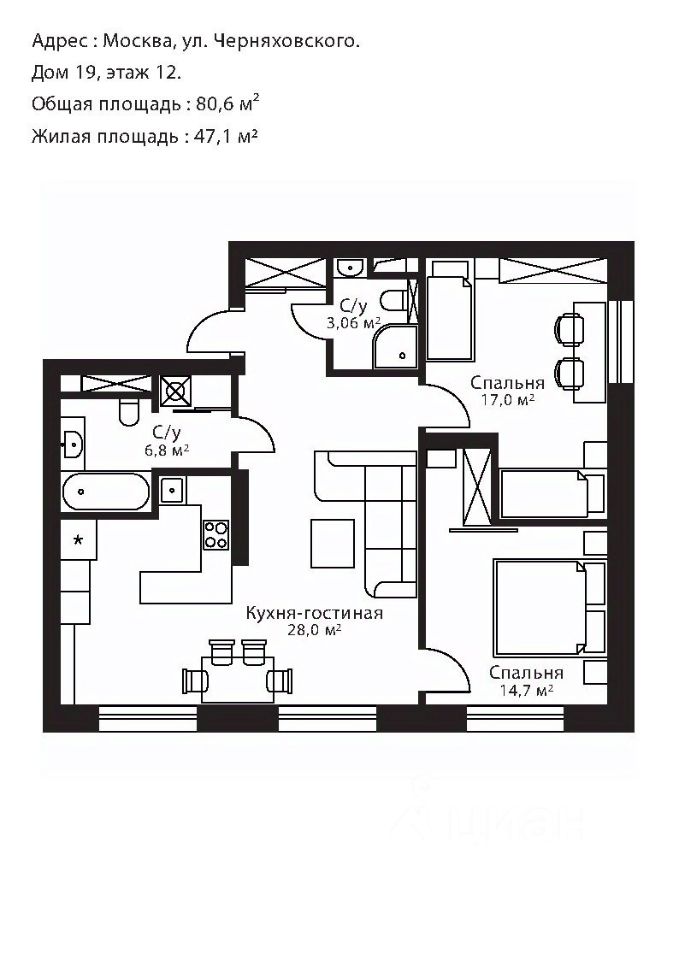 Функциональная планировка включает в себя просторную кухню гостиную 28 м, две уютные спальни 17 м., спальня 14,7 м, гардеробная с продуманной системой хранения, два просторных санузла.
