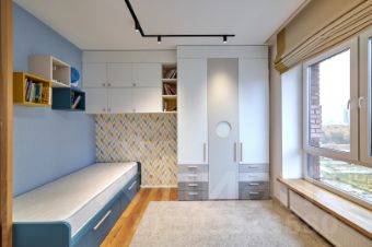 Окна спальной комнаты выходят на юго-западную сторону, что гарантирует жильцам наиболее комфортный режим солнечного освещения.