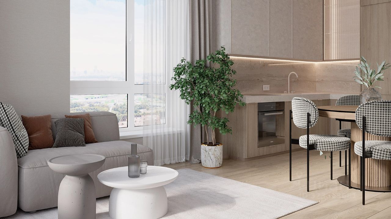 • Уютная и функциональная — студия легко разделяется на кухня — зона отдыха — рабочий уголок, что делает её удобной и для жизни, и для работы из дома