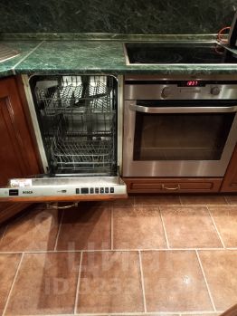 Кухонный гарнитур натуральное дерево со встроенной бытовой техникой и посудомоечной машиной Бош.