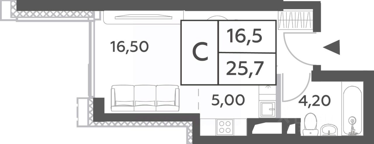 Продается квартира-студия на 25 этаже в строящемся доме (Корпус 1/Башня Creativity).