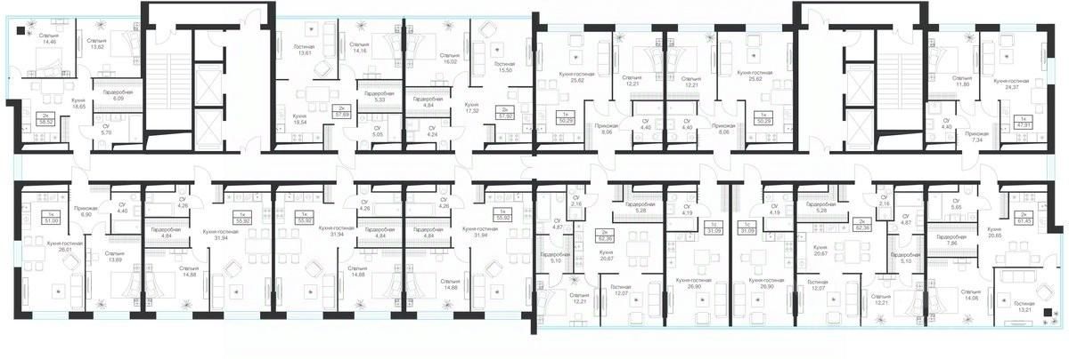 Продаются 1-комнатные апартаменты 51 кв.м. на 13-м этаже 20-этажного комплекса.